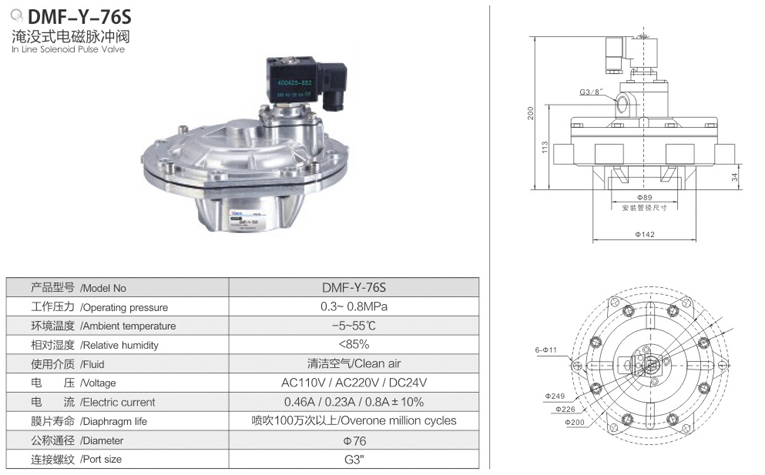 DMF-Y-76S Submerged electromagnetic pulse valve